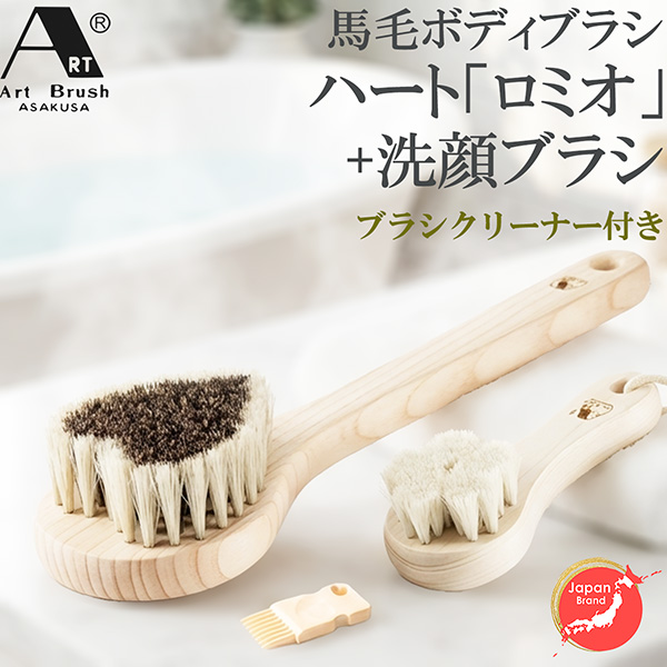 馬毛ボディブラシ・ハート「ロミオ」+洗顔ブラシ(ブラシクリーナー付)
