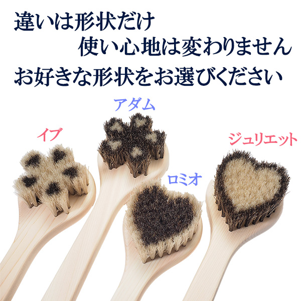 馬毛ボディブラシ・ハート「ロミオ」+洗顔ブラシのセット。