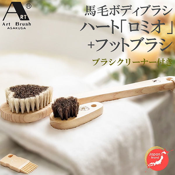 馬毛ボディブラシ・ハート「ロミオ」+フットブラシ(ブラシクリーナー付)