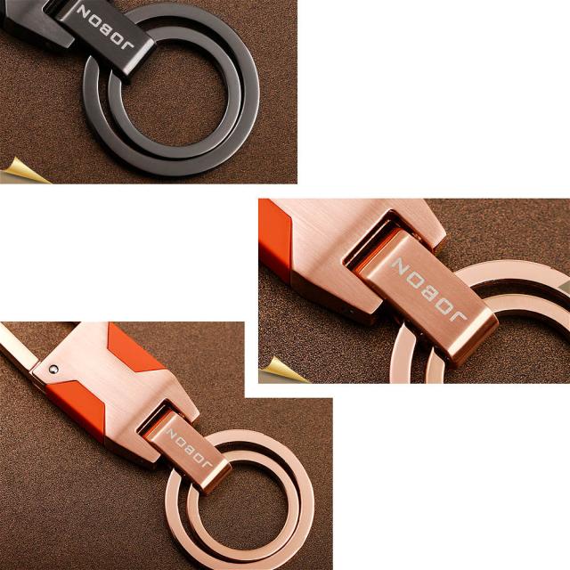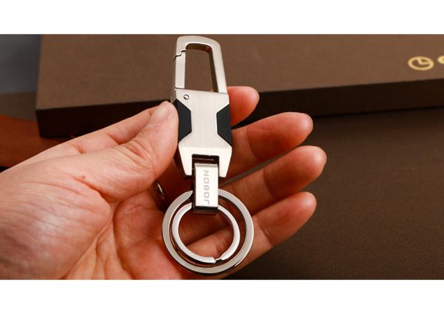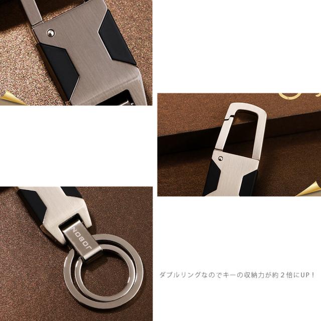 カラビナ式でバッグやベルトループからワンタッチ脱着が可能なキーホルダーダブルリングなのでキーの収納力が約2倍にUP!