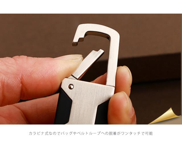 カラビナ式でバッグやベルトループからワンタッチ脱着が可能なキーホルダー
