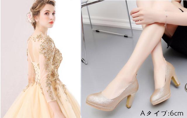 【サイズ有22〜25.5】パンプス 結婚式 太ヒール パンプス 結婚式 パンプス ラウンドトゥ 太ヒール ウェディング シューズ 結婚式やパーティーに セクシーで女性らしく 靴 シューズ レディース 靴 パーティー ハイヒール パンプス 選べるストラップ ヒールの高さ選べる ゴールドdi545s1s1zb
