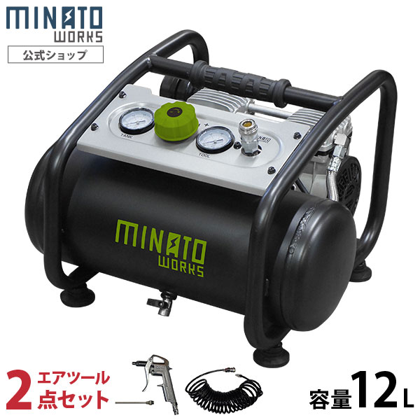ミナト オイルレス静音型コンプレッサー CP-12Si エアーツール2点付きセット (100V/タンク容量12L)