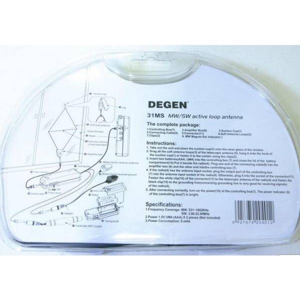 【送料無料】 DEGEN 高感度 中波・短波 室内用ラジオ アンテナ