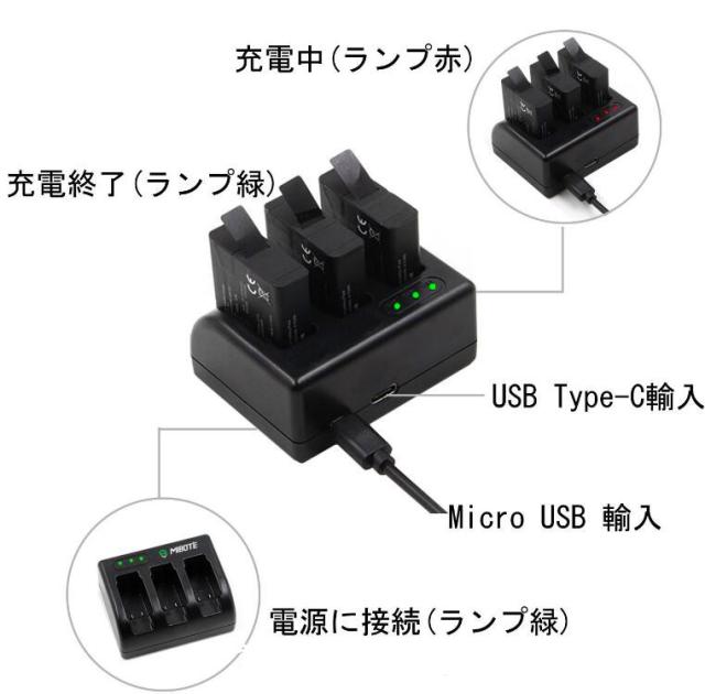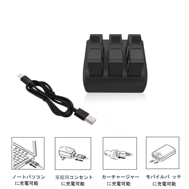 Gopro HERO5 対応 (ご注意:GoPro HERO4、3+、3使 用不可。)充電器は3個同時でも各600mA出力が可能です。Gopro HERO5 バッテリーのみ充電可能。