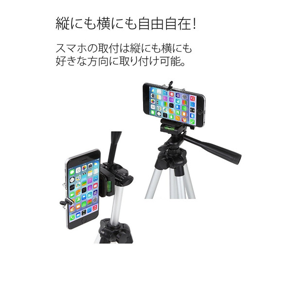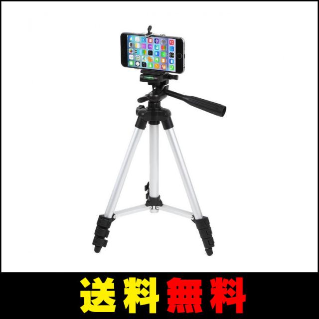 【送料無料】 iPhone などスマートフォン 携帯用 アルミ4段 三脚 3WAY雲台 固定ホルダー セット 収納袋付き /ビデオスタンド カメラス