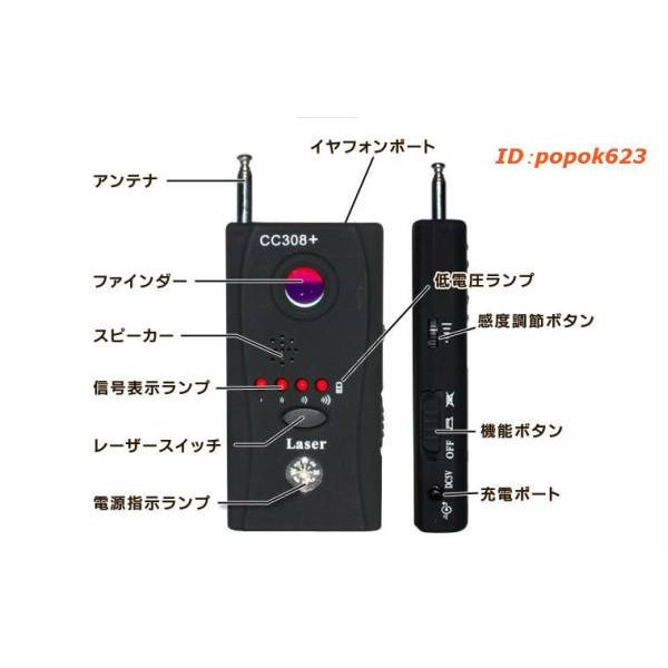 <盗聴器、無線/有線の隠しカメラの自動検知>