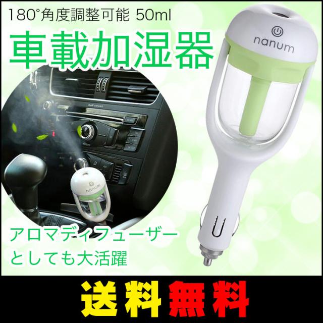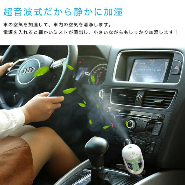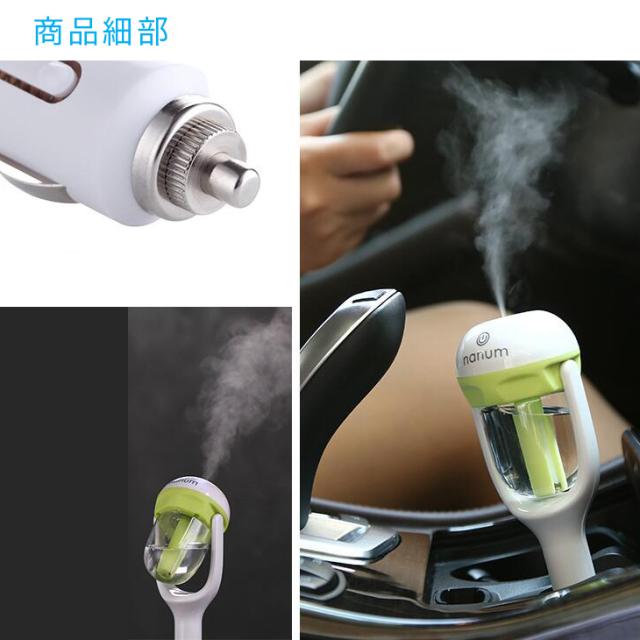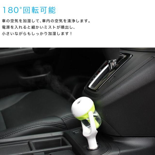 【送料無料】車載 加湿器 シガーソケット 差し挿むだけ 超音波 50ml ミニ 角度調整 空焚き防止 超音波式 アロマディフューザー グリーン