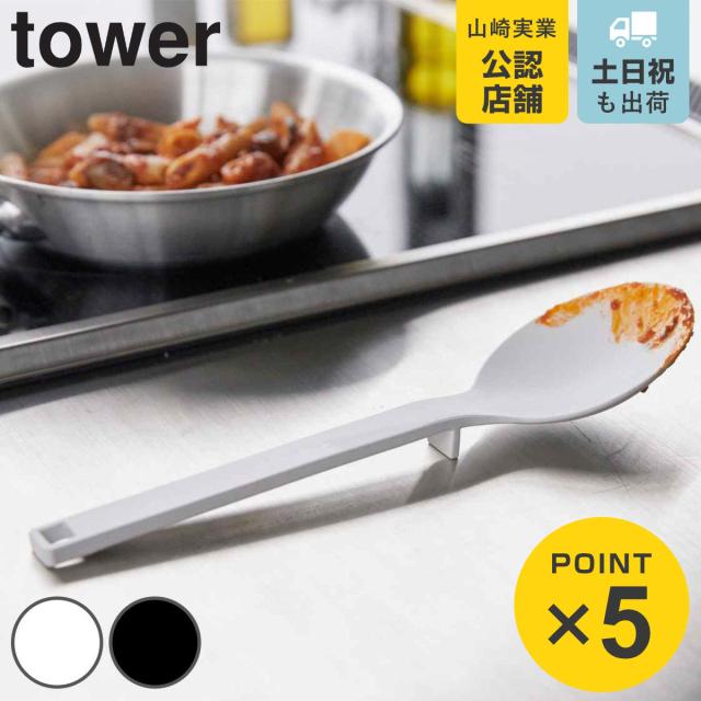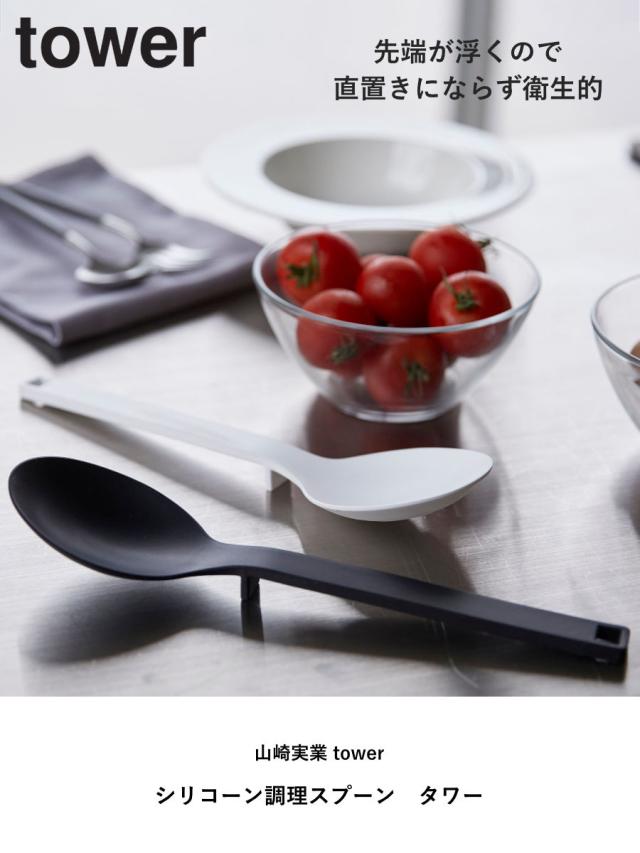 山崎実業 tower シリコーン調理スプーン タワー ( 4903208042727 シリコン製 キッチン ツール ホワイト ブラック キッチンツール お玉 レードル towerシリーズ 白 黒 計量スプーン yamazaki )