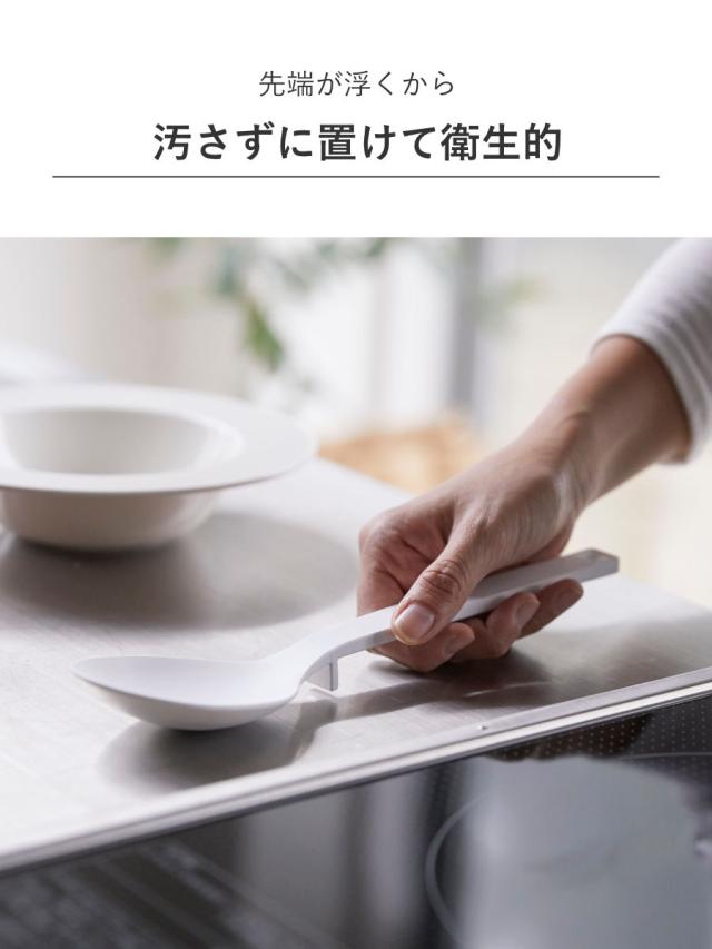 先端が浮くので直置きにならず清潔に使えます。サッと置けて使う時もすぐに取れるので、お料理中のストレスも少ないです。調理台を汚さずに置けるのが嬉しいポイント。