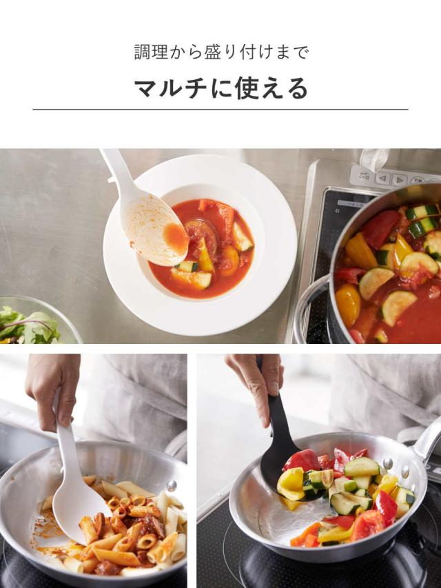 お玉として料理をすくったり、ヘラとして料理を炒めたり混ぜたり、1本で調理から盛り付けまで出来ます。
