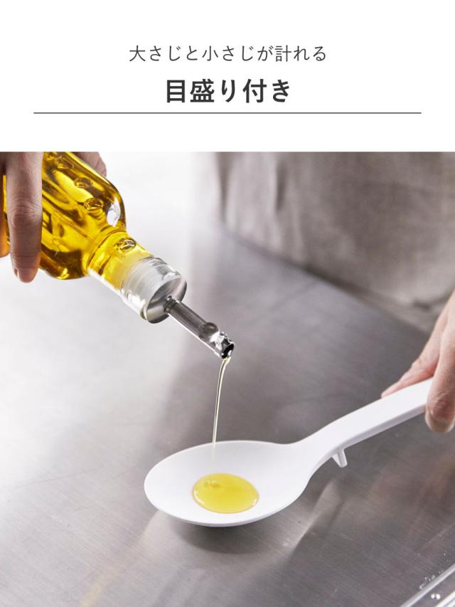 5cc(小さじ1)、15cc(大さじ1)が計れるメモリ付きです。ソース作りや料理の味付けの時に便利に使えて洗い物も減らせます。