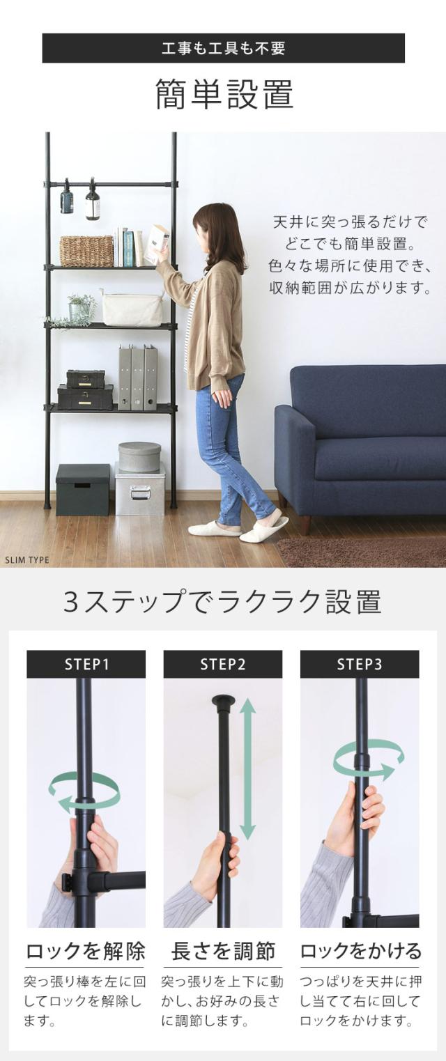 突っ張り棚 幅68/80 奥行26.5 高さ170〜260 天井突っ張り棚 おしゃれ 壁面収納 つっぱり 薄型 服 ウォールラック 突っ張り棒 棚 突っ張り ラック ハンガーラック 突っ張りラック 収納 賃貸 一人暮らし 新生活 スリム TWR-680 ワイド TWR-800 *