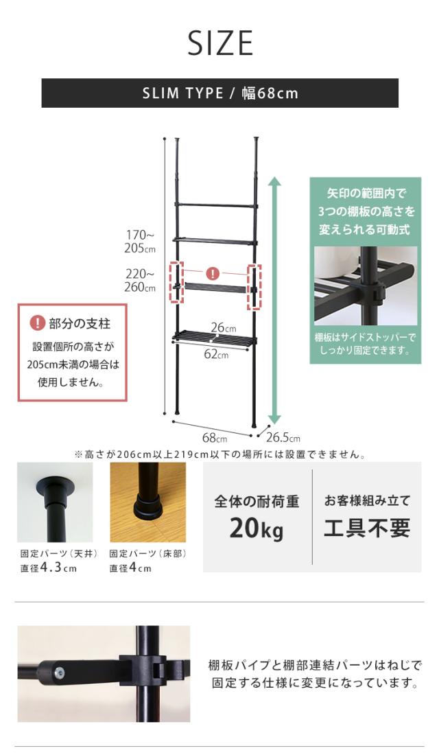 スリム:幅約68×奥行約26.5×高さ約170〜260