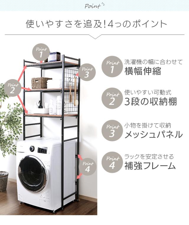ラック ランドリーラック LRP-301 洗濯機 伸縮 洗濯機ラック 洗濯機収納 収納 ランドリー収納 収納棚 洗濯物 脱衣所 洗面所 高さ調節 洗剤 スリム 収納 バスケット 洗濯用品 おしゃれ オシャレ ブラック ホワイト 送料無料 [int]