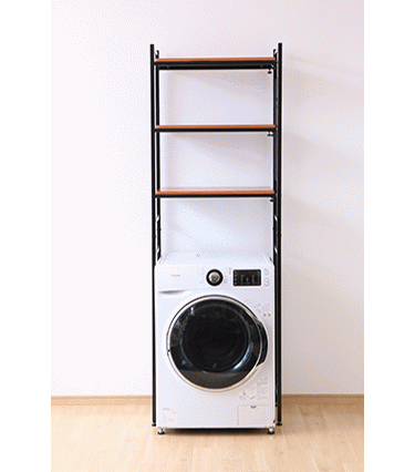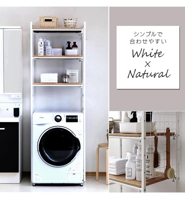 - この商品の棚高さは 再下段が120cmで10cm刻みで180cmまで7STEPです。 再下段を140cmに設定することで壁の水栓やコンセントの回避 洗濯機上空の空間確保(蓋開閉や洗剤自動投入の補充・乾...