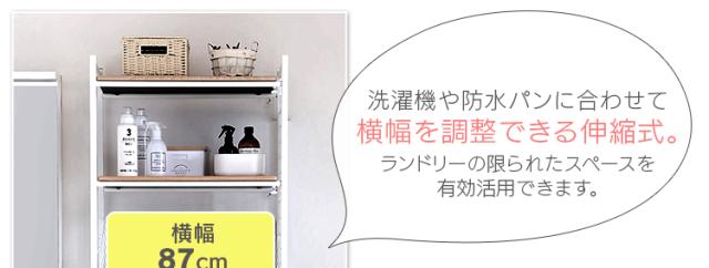 横幅約65〜92cmの伸縮タイプでお家の洗濯機に合わせて設置が可能です。