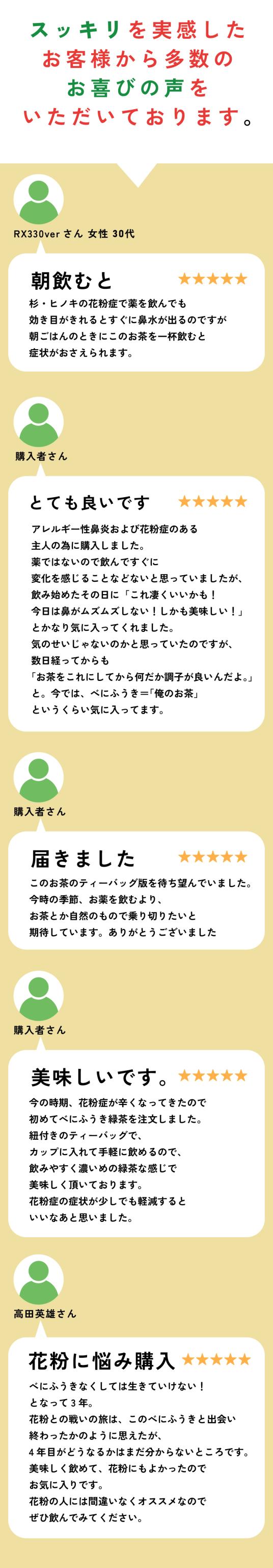 - この時期は?欠かせません、鼻がムズムズでスッキリ頂いております、ありがとうございました