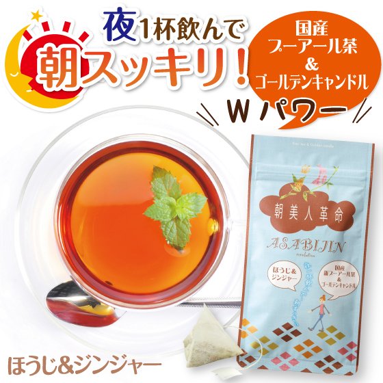 ダイエット 朝美人革命 ほうじ&ジンジャー(2g×7ヶ入り)1袋(ティーパック) 夜飲んでスッキリ ハーブティー ダイエットティー ダイエット 国産ダイエットプーアール茶 お茶 日本茶 荒畑園 プレゼント agesugi_sbe