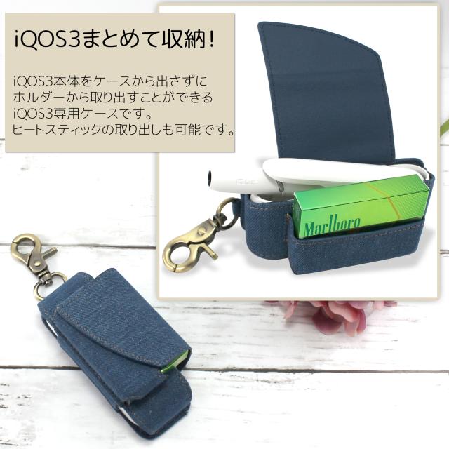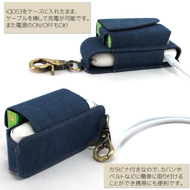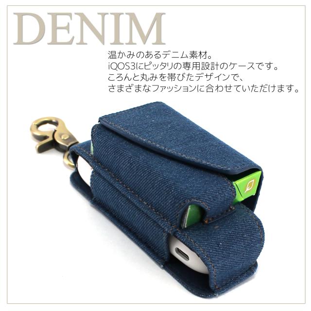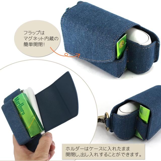 ・温かみのあるデニム素材のアイコス3専用ケース。