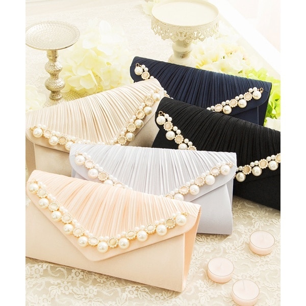 プリーツパールビジューレター型クラッチバッグ
