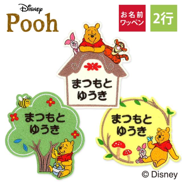お名前ワッペン くまのプーさん Pooh ディズニー キャラクター 2行 3枚セット ネームワッペン アイロン 入園 刺繍 プレゼント OR