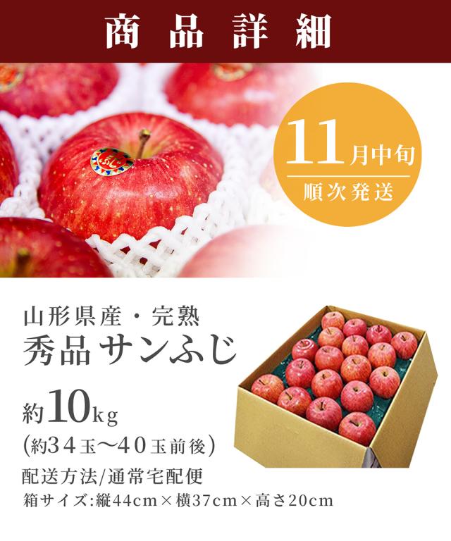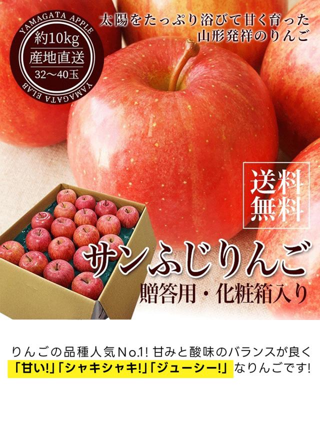 \ただ今、お届け中!/ りんご サンふじ 10kg フルーツ 山形県産 秀品 名水百選の水使用 ステビア栽培 贈答用 化粧箱入 家族みんなで サイズ 送料無料