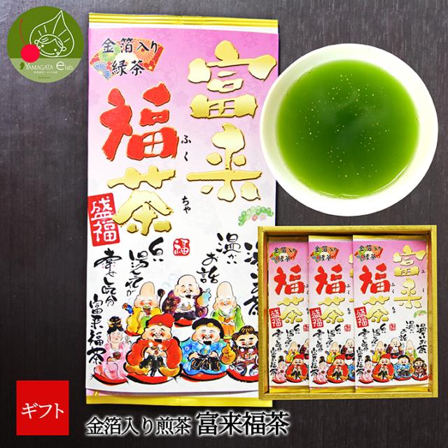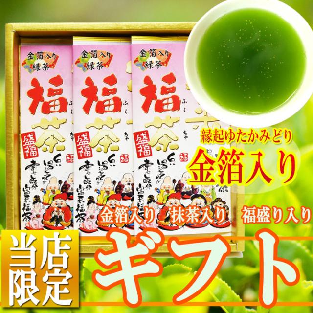 金箔入 縁起煎茶 富来福茶 3本入りギフト 熟成ゆたかみどり使用の煎茶 鹿児島県煎茶 金箔入り緑茶 のお茶 御年始 お茶 ギフト煎茶 抹茶
