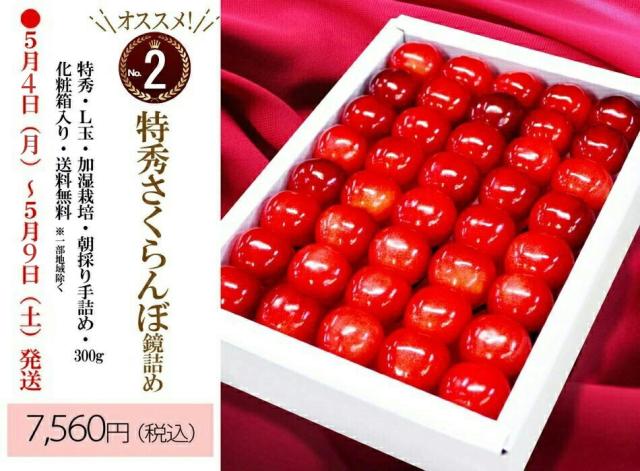 【母の日 ギフト 今なら当日お届け!】 さくらんぼ 佐藤錦 特秀 L玉 鏡詰め 300g ギフト 山形県から産地直送 化粧箱入 プレゼント 産地直送 手詰め メッセージカード
