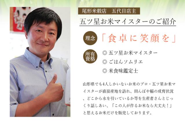 - 山形県内で4人しかいないお米の専門家・五ツ星お米マイスターが、山形県内各地の農家さんを直接訪ね、こだわりのお米のみ(全品種特別栽培米)を集めました。