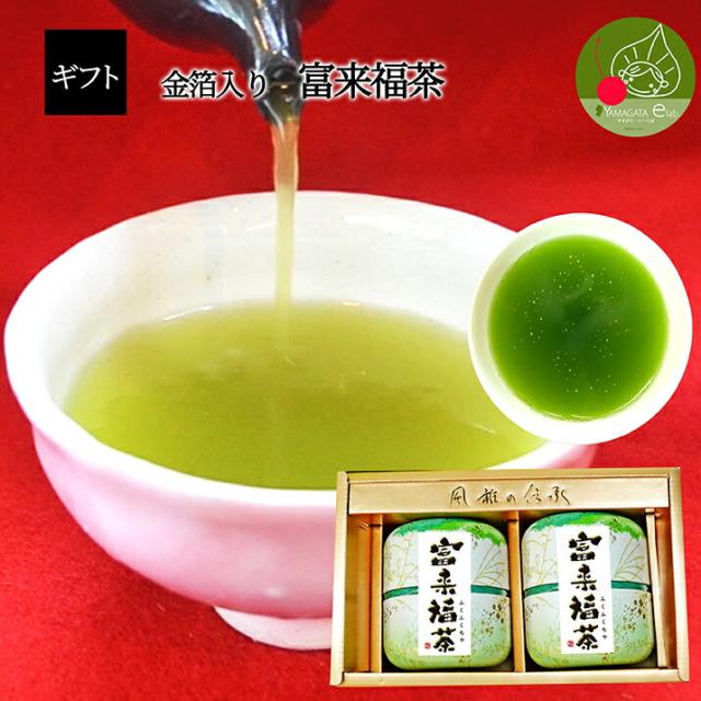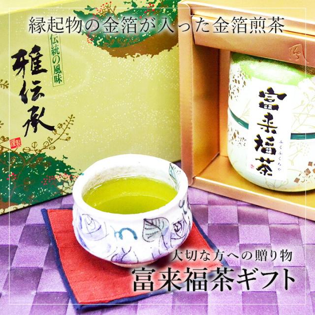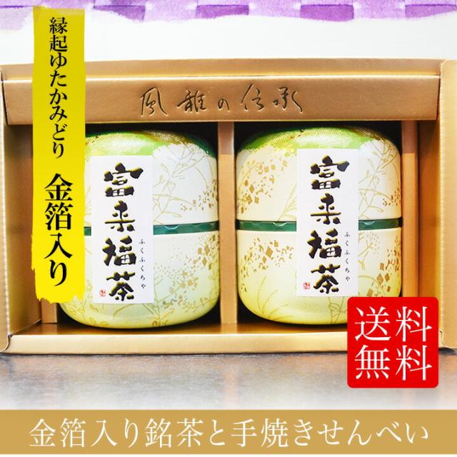 【縁起銘茶ギフト】 金箔入り縁起煎茶 富来福茶 ギフトセット (60g×2缶) 金箔入りお茶 ギフトお茶 還暦祝いギフト ギフト 送料無料 お