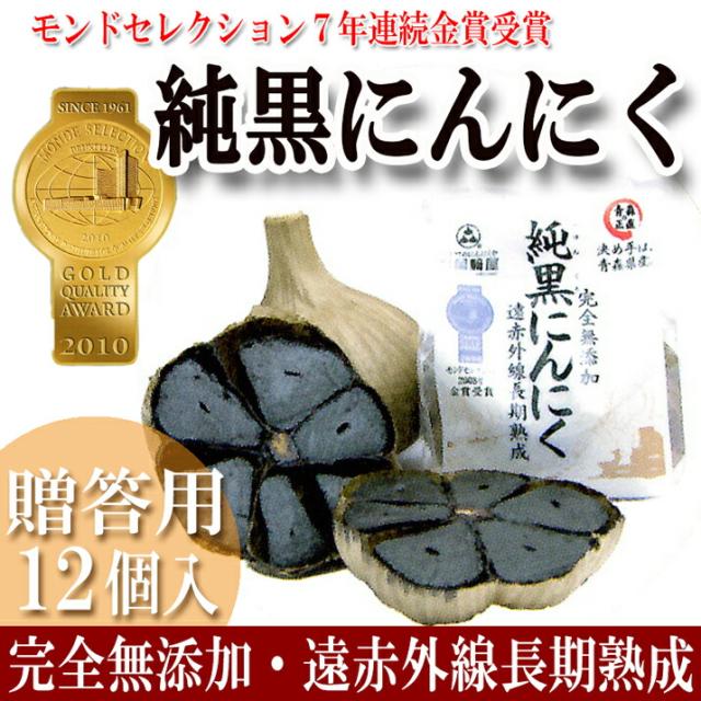 純黒にんにく 12個 贈答用 化粧箱入り 青森県産 無添加 黒ニンニク 健康 元気 健康生活 プレゼント 岡崎屋 遠赤外線 長期熟成 敬老の日