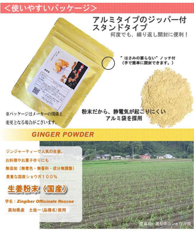 即日発送 生姜粉末 国産 180g 高知県産 生姜パウダー 無添加 無着色 ジッパー付袋 花見 冷え 寒さ対策に 蒸し 乾燥ショウガ粉末生姜 蒸し