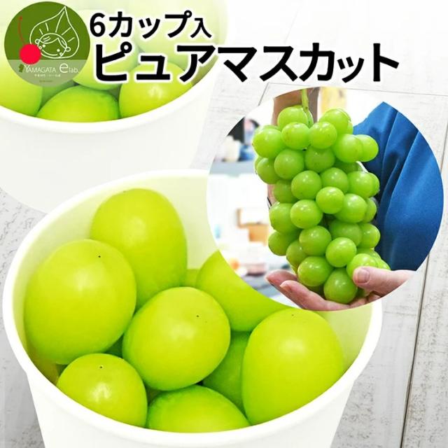 【2026年9月下旬発送 先行予約】 シャインマスカット ピュアマスカット 6カップ入り 送料無料 山形県産 ぶどう 高級ギフトブドウ 贈り物やプレゼントにも 誕生日