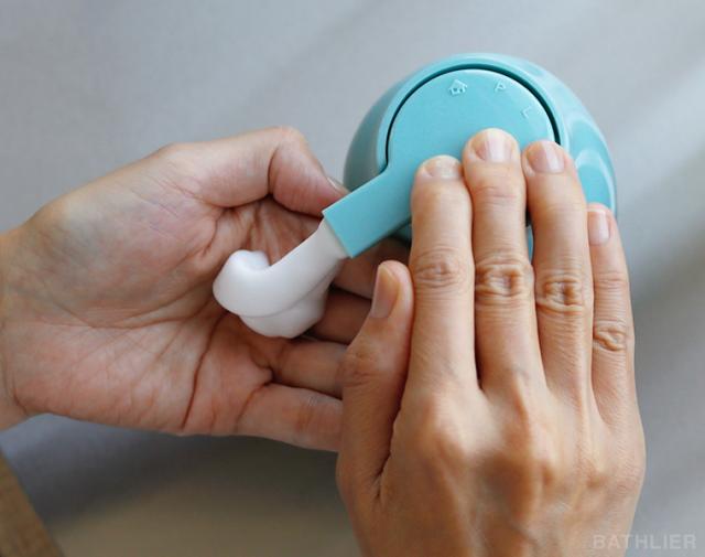プリスのディスペンサーをワンプッシュ、スルーッと滑らかなクリーム泡が滑るように出ます。滑らかクリーミーな泡ソープ