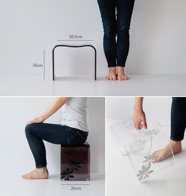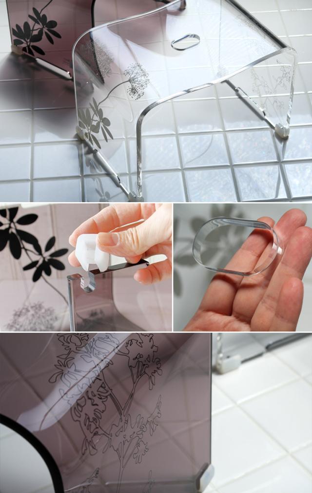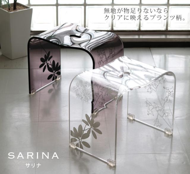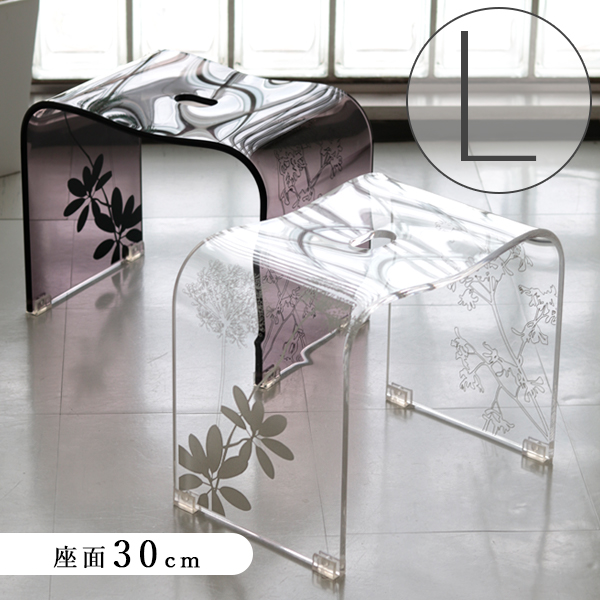 【送料無料】バスチェアー「SARINA(サリナ)」(L)【アクリル 風呂イス バススツール 風呂椅子 風呂イス フロイス 柄 北欧 植物柄 花柄 ギフト プレゼント bathchair 白 茶 クリア ブラウン シンプル シック バスグッズ】