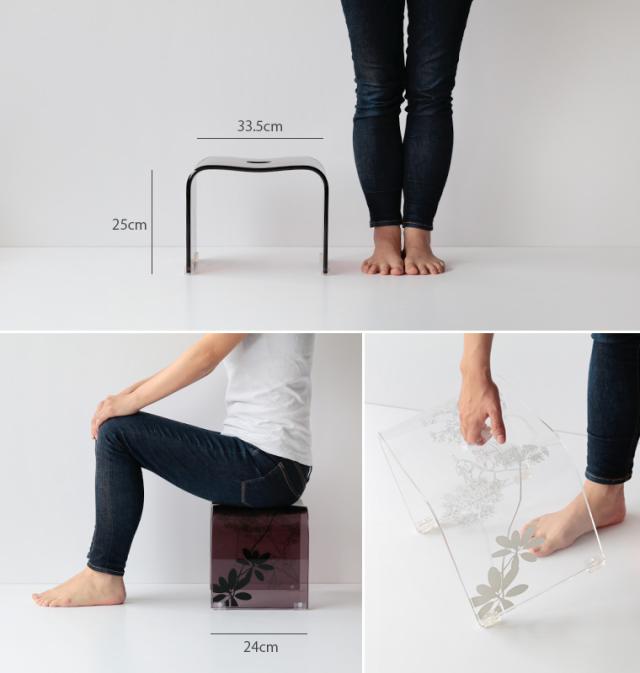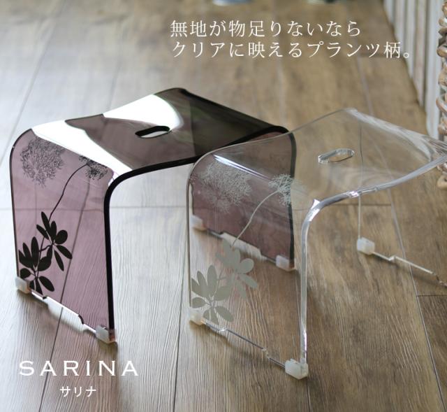 【送料無料】バスチェアー「SARINA(サリナ)」(M)【アクリル 風呂イス バススツール 風呂椅子 風呂イス フロイス 柄 北欧 植物柄 花柄 ギフト プレゼント bathchair 白 茶 クリア ブラウン シンプル シック バスグッズ】