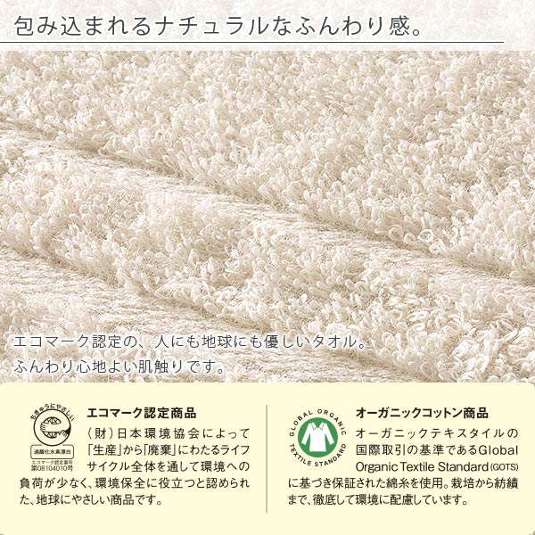 日本製 バスタオル「エコオーガニックパイル」泉州タオル【オーガニックコットン ナチュラル 有機精練 綿100% 無農薬栽培 国産 無地 タオル 有機栽培 アイボリー ベージュ お風呂 ギフト】