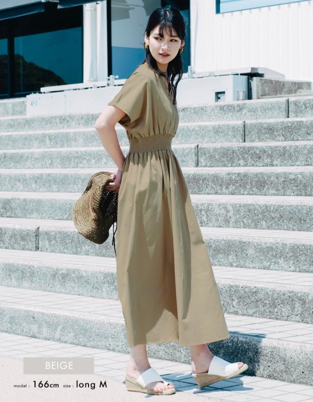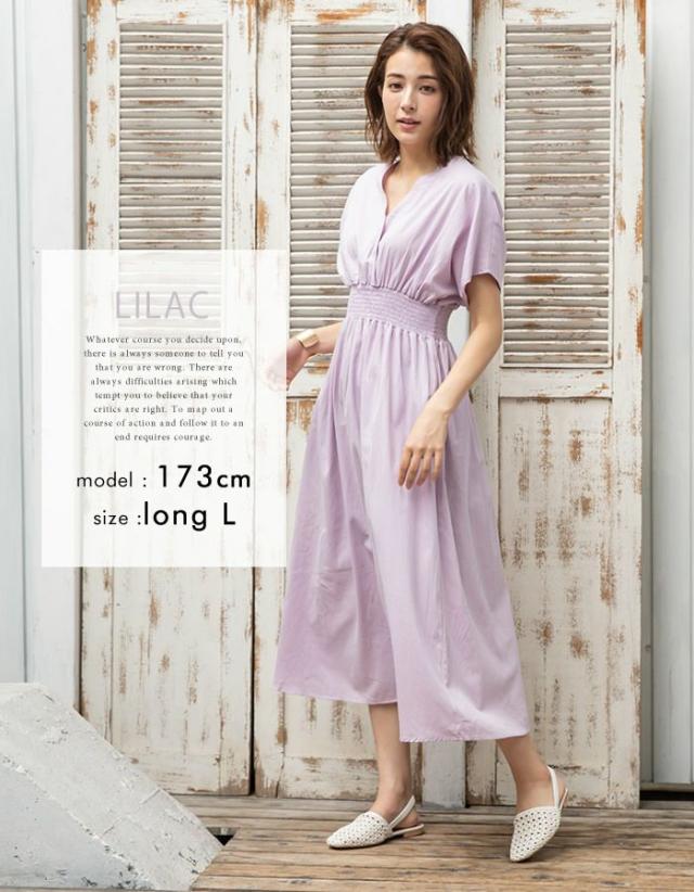 - 低身長なので、ロング丈のワンピースは引きずってしまい買えず、短い方を購入しました。 150cmの50キロなので、写真の細いモデルさんよりも横に広がって若干ムームーみたいな南国感を感じますが、普段息子のTシャツばかり着ていたので家族にもオシャレだと好評でした。 胸のすぐ下でしまってるデザインが大好きなので嬉しいです。しまってるのに着る時はゴムがぐーーーんと伸びてどこも窮屈な思いをしないところが最高です。脱ぎ着もし易い。 ちょっとシワが気になるかなーってところと、そうであればもうちょっと低価格だと色違いでもう1枚…と手が伸びるところなので期待を込めて星4つ。