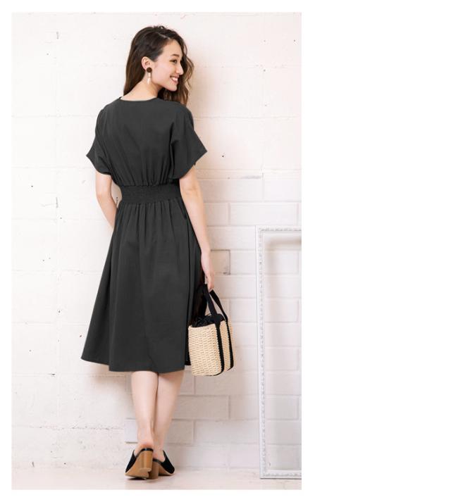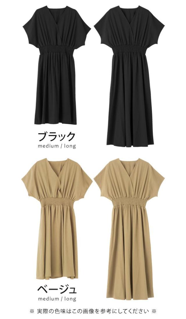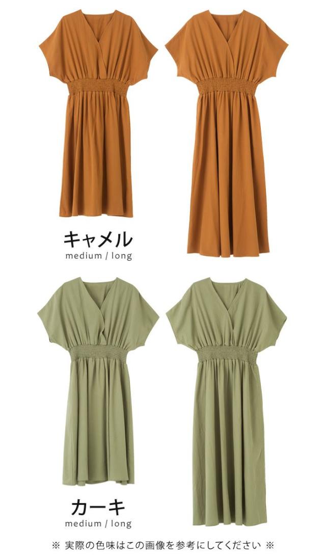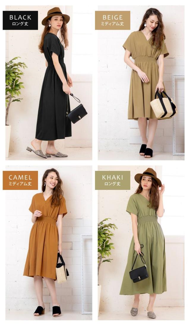 ≪ゆうメール便配送30・代引不可≫ 送料無料 カシュクール デザイン ウエストシャーリング ワンピース ブラック ベージュ キャメル カーキ ミディアム ロング M L
