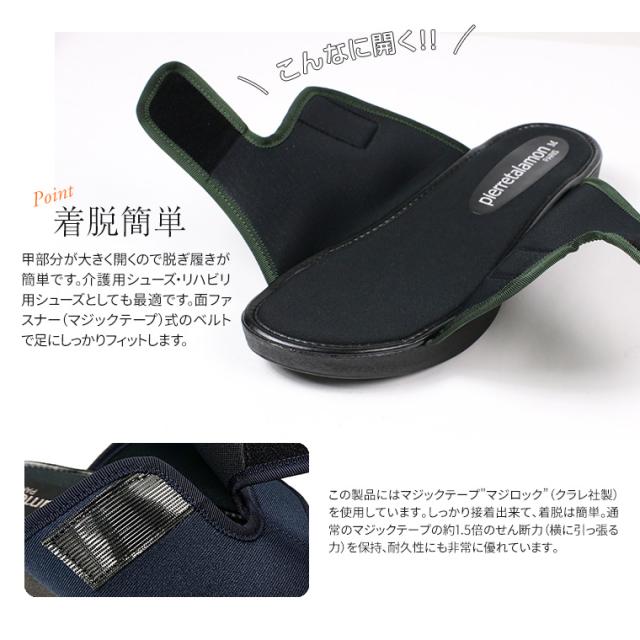 履きやすいのはもちろんのこと、履かせやすいので介護用シューズ・リハビリ用シューズとしても最適です。