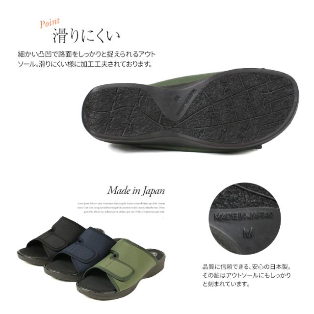 サンダル メンズ おしゃれ 玄関 つっかけ メンズ コンフォートサンダル 疲れにくい 静音 介護靴 介護シューズ つま先なし リハビリシューズ ブランド 大きいサイズ 軽量 歩きやすい 紳士 男性用 オフィスサンダル 蒸れない 黒 日本製 カジュアルサンダル ブラック 24527