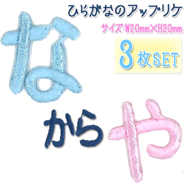 文字ワッペン ひらがな 中 な〜や行 3枚セット 名前 アイロン 男の子 女の子 名入れ お名前 文字 アップリケ CP
