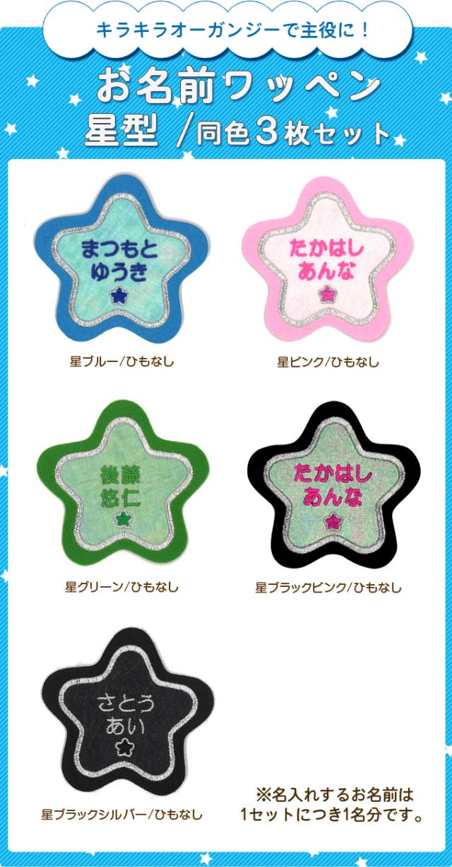 お名前ワッペン フェルト 星型 3枚組 ネームワッペン アイロン 入園 刺繍 プレゼント OR