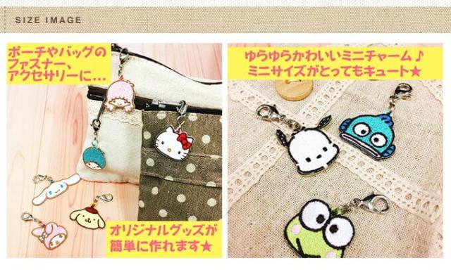 ミニチャーム マイメロディ ポムポムプリン キキララ シナモン サンリオ プレゼント アクセサリー パーツ キャラ ストラップ 布 刺繍 小さめ