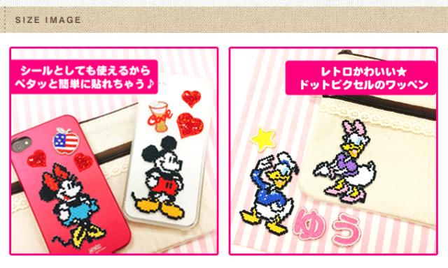 ワッペン ミッキー ピクセル ディズニー アイロン シール かわいい 刺繍 キャラクター グッズ プレゼント 服