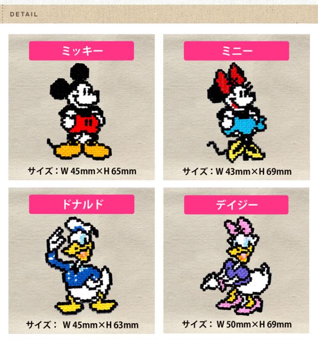 【ミッキー】約W 45mm×H 65mm 【ミニー】約W 43mm×H 69mm 【ドナルド】約W 45mm×H 63mm 【デイジー】約W 50mm×H 69mm |