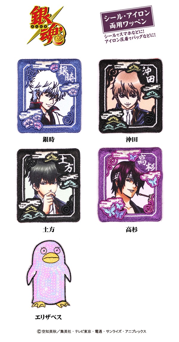 キャラクターワッペン 刺繍ワッペン 男の子 女の子 入園 入学 幼稚園 保育園 小学校 お祝い ギフト 銀魂 銀時 土方 沖田 高杉 エリザベス