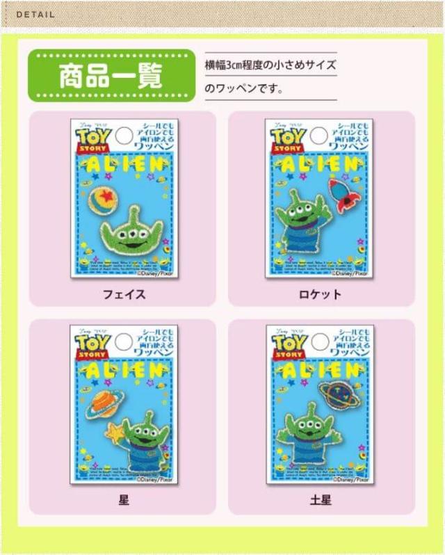ワッペン エイリアン スペース 小 ディズニー アイロン シール かわいい 刺繍 キャラクター グッズ プレゼント 服