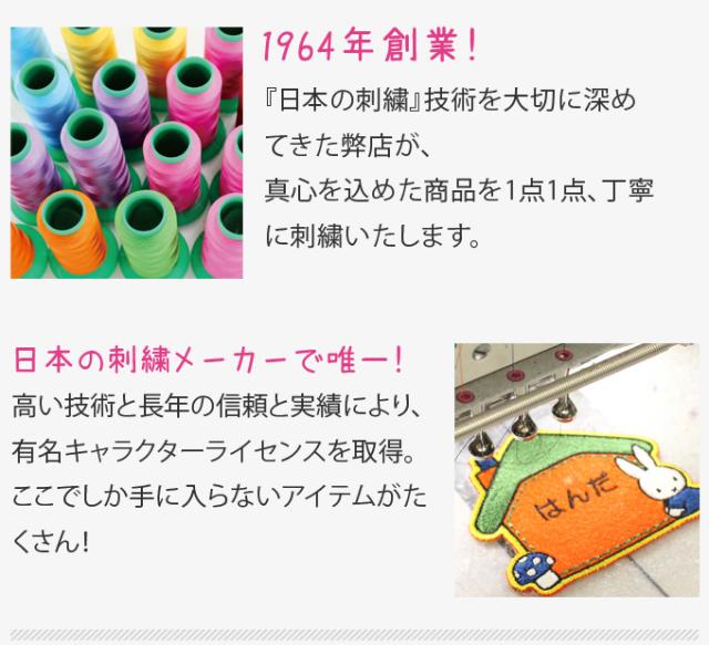 | ご注意 | ※お名前刺繍なしでの販売は致しかねます。ご注文の際はご注意ください。 ※オーダー商品のため、返品はできませんのでご注意ください。 (ご注文前にお名前の間違いやサイズ、絵柄等十分にご確認ください。) ※確認事項がある場合、別途確認のご連絡を差し上げます。 ※銀行振込等の前払い決済については、ご入金を確認の翌日から制作・発送となります。 ※セット商品については、1セットにつき1名様のお名前となります。 尚、お名前の表記は共通となります。 ◎OK「さとうみお」「さとうみお」「さとうみお」 ×NG「さとうみお」「佐藤美緒」「サトウミオ」 アイロンを使用する際は高温になるため、取り扱いには十分ご注意ください。 |